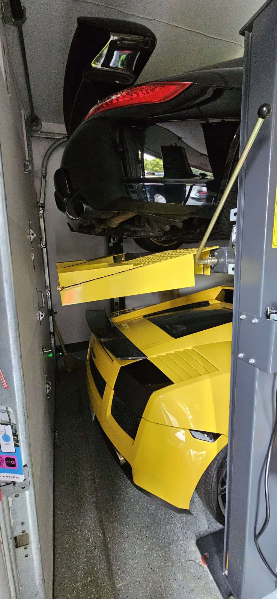 The results? The client was pleased. After installing the car lifts, the garage doors now rise almost flush with the ceiling—with just half an inch of clearance. The transformation is stunning.